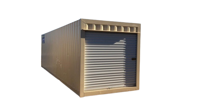 This unique 30ft storage container with Roll-Up door is commonly used to service the construction industry. It is designed to fit 20ft lumber and electrical pipes. The added Roll-Up door feature eliminates the extra space required for a swing out cargo door.