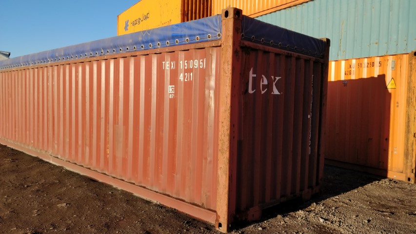 Designed and built for storage and top loading access, the 40′ open top soft roof shipping container is the most common and available industry size.